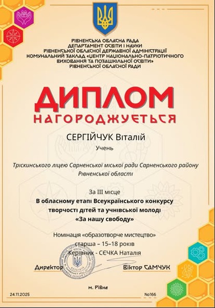 Результати участі здобувачів освіти у обласному етапі Всеукраїнського конкурсу творчості дітей та учнівської молоді "ЗА НАШУ СВОБОДУ"